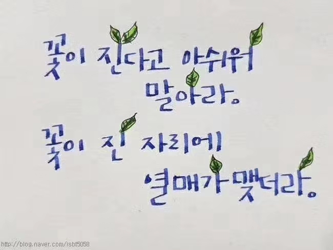 지금 내가 해야할 것은? "지금 할 수 있다"로 바꾸지 않는다면, 10년뒤에 '10년만 젊었어도' 라는 말을 하게될 것입니다. 10년 뒤의 변화를 위해 오늘부터 무엇을 어떻게 할 것인지 생각해야 하며 자신이 머무는 곳이나 만나는 사람들을 바꾸는외적인 변화에서부터 변화는 시작됩니다. 하루…(2019-09-23 09:14:42)