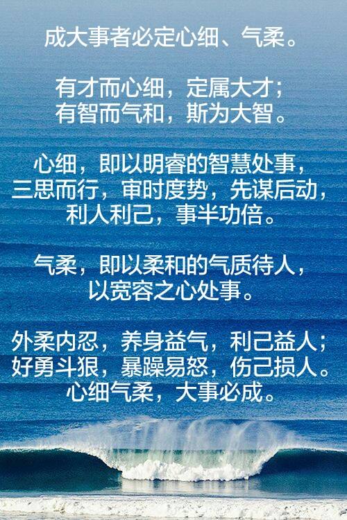成大事的九种手段,九种能力,九种心态! 生伟业的建立,不在能知,乃在能行。 01 成大事的九种手段 ◆ 敢于决断,克服犹豫不定的习性 很多人之所以一事无成,最大的毛病就是缺乏敢于决断的手段,总是左顾右盼、思前想后,从而错失成功的最佳时机。成大事者在看到事情的成功可能性到来时,敢于做出重大决断,因此取得先机。 ◆ 挑战弱点——彻底改变自己的缺陷 …(2019-09-25 18:16:34)
