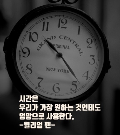 인생과 시간시간은 모든 원료와 같은 것이다. 시간이 있으면 모든 것이 가능해지고, 시간이 없으면 모든 것이 또 불가능해진다. 사람은 누구나 하루 24시간을 산다. 시간의 세계에서는 천재라고 해서 1분 1초 더 받는 것도 아니고, 바보라고 해서 덜 받는 것도 아니다. 또한 미래의 시간을 앞당겨서 쓸 수도 없다. 단지…(2017-08-29 21:34:33)
