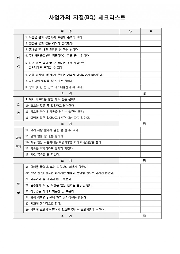 사업가의 자질(BQ) 체크리스트