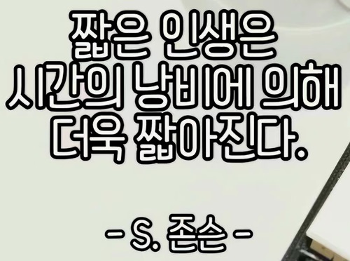 草露人生같이 짧은 인생에 랑비까지 하면 나머지 시간은 없다 인기글 시간은 곧 생명이고 생명은 곧 시간이다 인생은 시간과 싸움이기때문이다 그러므로 가치없는 일에 시간을 낭비하지 말라 정말 가치있는 중요한 일을 미루고 그 다지 중요하지 않은 일들에 매달리는 경향이 많다는 것을 명심하고 순간의 시간적 랑비라도 막아야 한다 . 특히 핸드폰에서 별로 가치없는 정보에 눈을 떼지 못하며 시간…(2020-03-25 01:54:53)