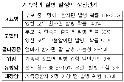 가족력, 두려워말고 활용하라! 건강을 위해서 할 수 있는 일은 무궁무진하다. 식습관과 운동, 감정조절 등에 이르기까지 건강을 지키기 위한 노력은 개인의 의지에 달렸다. 그런데 오직 하나, 자신이 선택할 수 없는 것이 있다. 바로, 가족력이다. 질병 발생의 20~30%는 가족력이 관여한다. 반대로 술과 담배, 비만 등 …(2020-04-30 23:16:33)