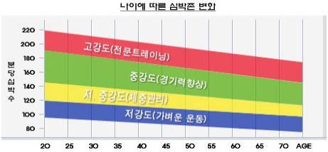 운동을 해서 체력을 향상시키고 건강해지기 위해서는 우리의 심장, 폐에 어느 정도의 부하를 가해줘야 인체가 반응을 하여 변화가 생기는 것입니다. 즉, 개개인의 특성을 고려하여 계산되어진 심박수 범위 내에서 달리기, 수영, 웨이트트레이닝을 하면 됩니다. 이 방법이 가장 정확하고 효과적인 운동법입니다.