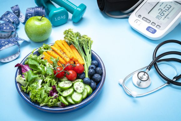 통곡물, 과일, 채소 및 저지방 유제품이 풍부한 식단으로 식사를 하고, 포화지방과 콜레스테롤 섭취를 줄이면 고혈압이 있는 경우 혈압을 최대 11mmHg까지 낮출 수 있다. 이런 식사 계획은 고혈압을 멈추기 위한 식이 접근법(DASH·Dietary Approaches to Stop Hypertension)으로 알려져 있다.