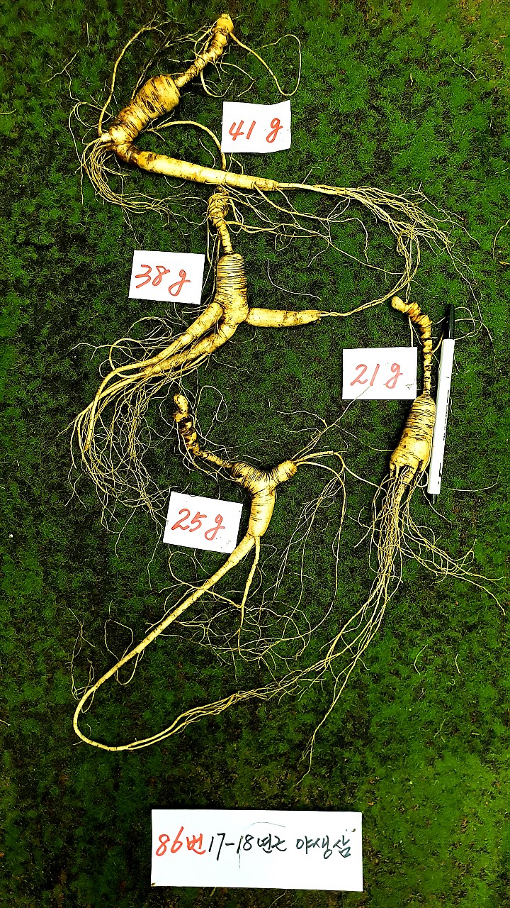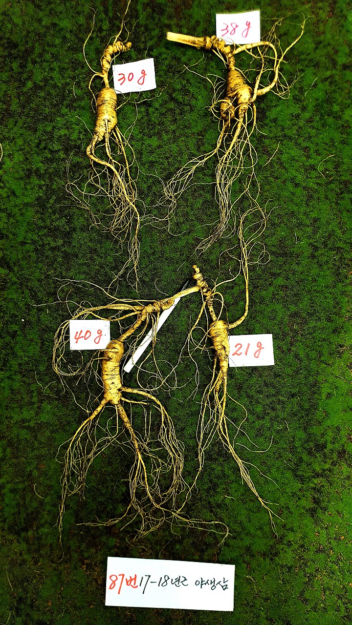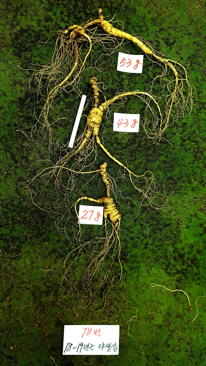 사진에 산삼은 백두산에 야생산삼씨를 심은 후 자연방임상태에서 야생으로 자란 산삼 에서 씨가 저절로 떨어져서 자연 그대로 자란 덕분에 1대 야생산삼이라고 하며 또는 임하삼(参)이라고 하며 야생 산양삼이라고도 한다 87번 한세트 4뿌리 품절 88번 한세트 4뿌리 품절 86번 한세트 4…(2019-10-16 13:49:25)