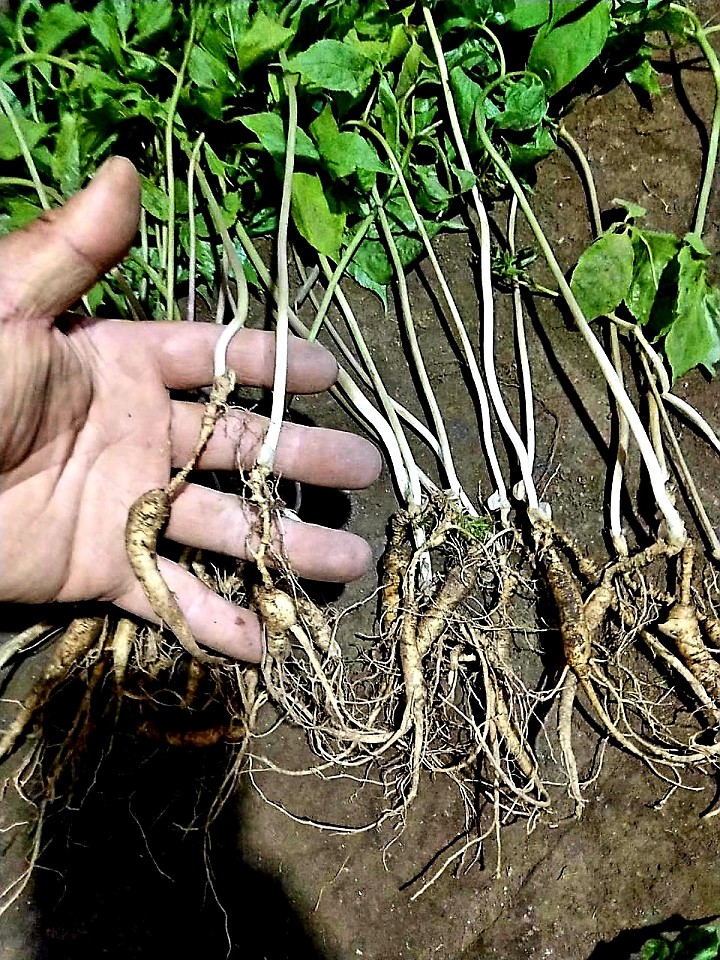 말복이 지나도 여름 폭염은 아직도 물러가지 않았지만 멀리 가까이서 가을이 오는 소리에 산삼잎은 벌쎄 단풍이 들기 시작합니다 푸른 잎이 노랗게 익어 가며 잎이 지며 떨어지며 가을삼이 됩니다 그래서 채심하면 싹대를 잘라버리고 이렇게 삼뿌리만 남게 됩니다 이제부터 명년 4월까지 삼뿌리만 공급할것입…(2019-08-17 18:54:48)