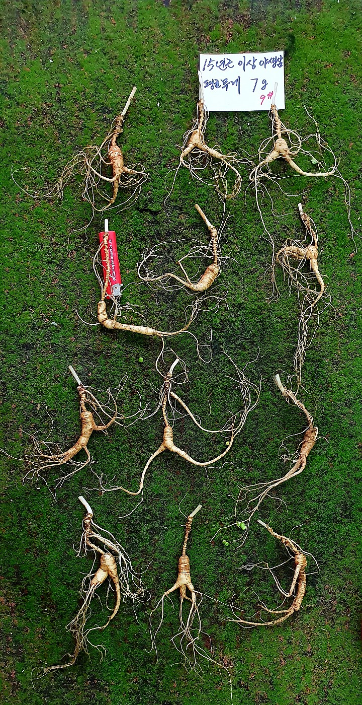 산삼은 벌써 잎이 지며 단풍이 들기 시작하여 이제 끝납니다 그래서 채심한 산삼 중에서 제일 잎이 싱싱한 놈만 골라 골라서 선별했는데, 제일 잎이 싱싱하고 삼뿌리도 제일 멋이 있는 것만 골랐기때문에 가격도 조금씩 오른 것 같습니다 올해에 제일 마지막 잎장있는 산삼인 것 같습니다 서둘러 주문하세요 사진 …(2019-08-13 13:42:38)