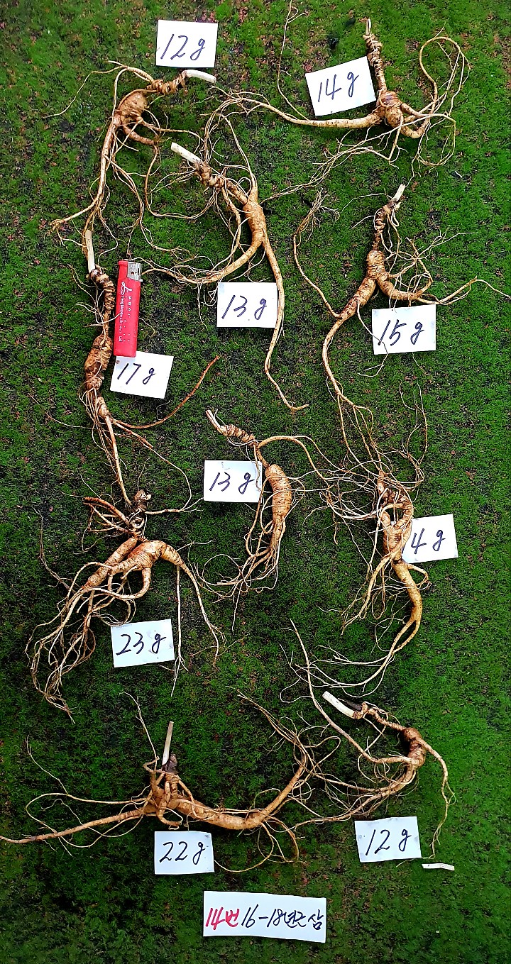 콩 심은데 콩 난다고 1~2대야생산삼씨를 심은 후  자연방임상태에서  야생으로 자란 덕분에  약통이  작고 뇌두가 가늘고 길게 자랐눈데 , 뿌린대로  거두어서 야생삼이라고 합니다