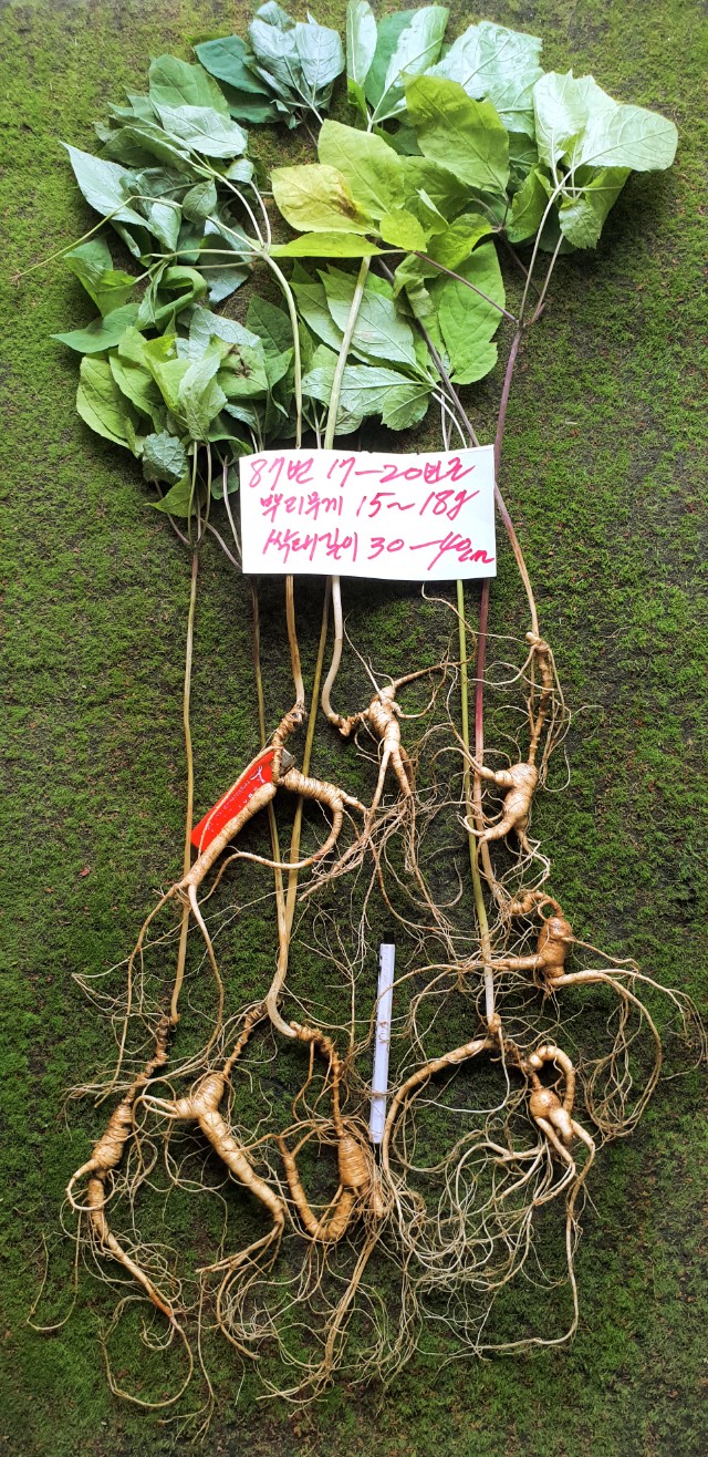 말복이 지나도 여름 폭염은 아직도 물러가지 않았지만 멀리 가까이서 가을이 오는 소리에 산삼잎은 벌쎄 단풍이 들기 시작합니다 푸른 잎이 노랗게 익어 가며 잎이 지며 떨어지며 가을삼이 됩니다 그래서 채심하면 싹대를 잘라버리고 이렇게 삼뿌리만 남게 됩니다 이제부터 명년 4월까지 삼뿌리만 공급할것입…(2019-08-17 18:54:48)