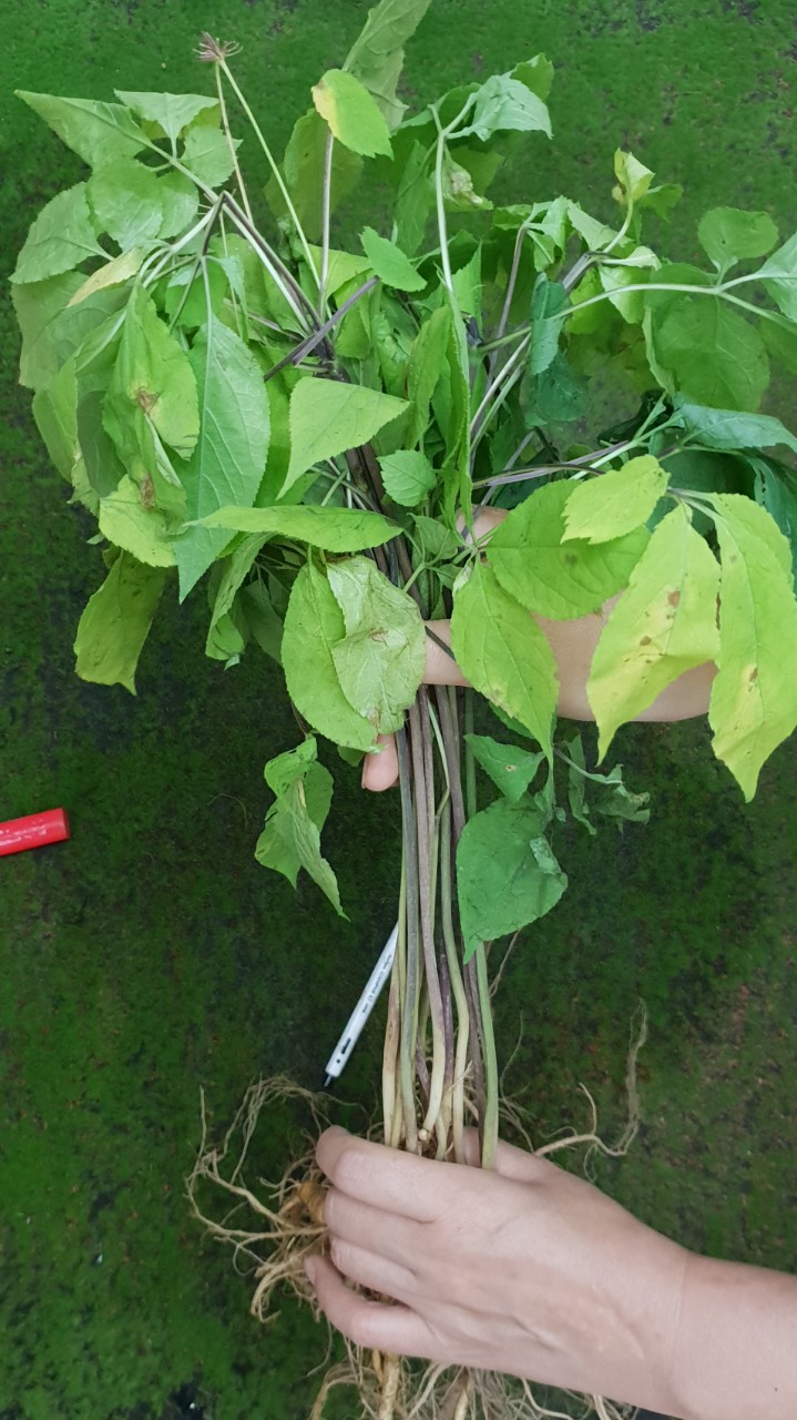 말복이 지나도 여름 폭염은 아직도 물러가지 않았지만 멀리 가까이서 가을이 오는 소리에 산삼잎은 벌쎄 단풍이 들기 시작합니다 푸른 잎이 노랗게 익어 가며 잎이 지며 떨어지며 가을삼이 됩니다 그래서 채심하면 싹대를 잘라버리고 이렇게 삼뿌리만 남게 됩니다 이제부터 명년 4월까지 삼뿌리만 공급할것입니다 …(2019-08-17 19:07:08)