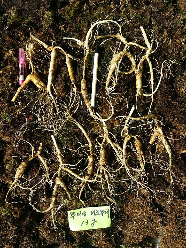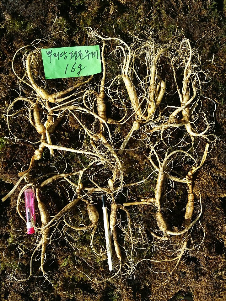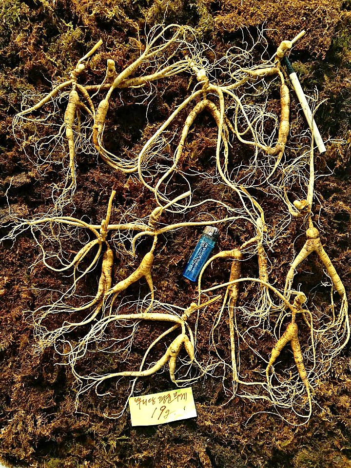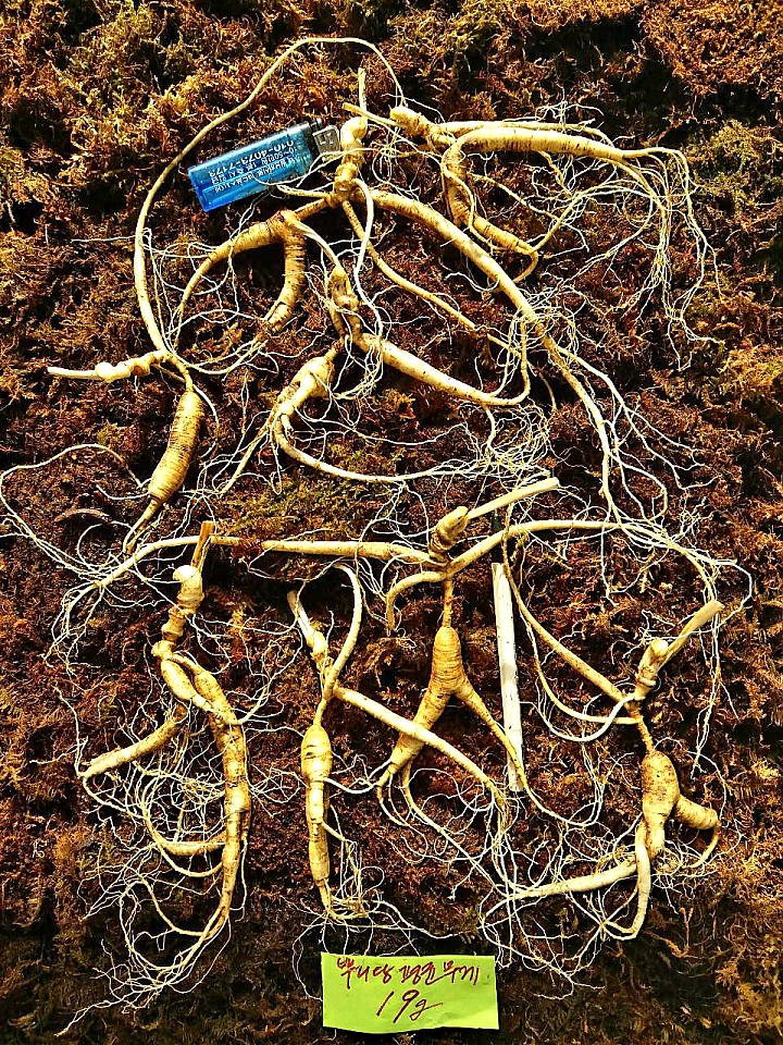 이제 5년이상 턱수가 더 자라서 20년근이 되면 아들삼이 생길수 있는 우수한 삼이다 뿌리당 10만원대로 잘 나가는 야생삼이다