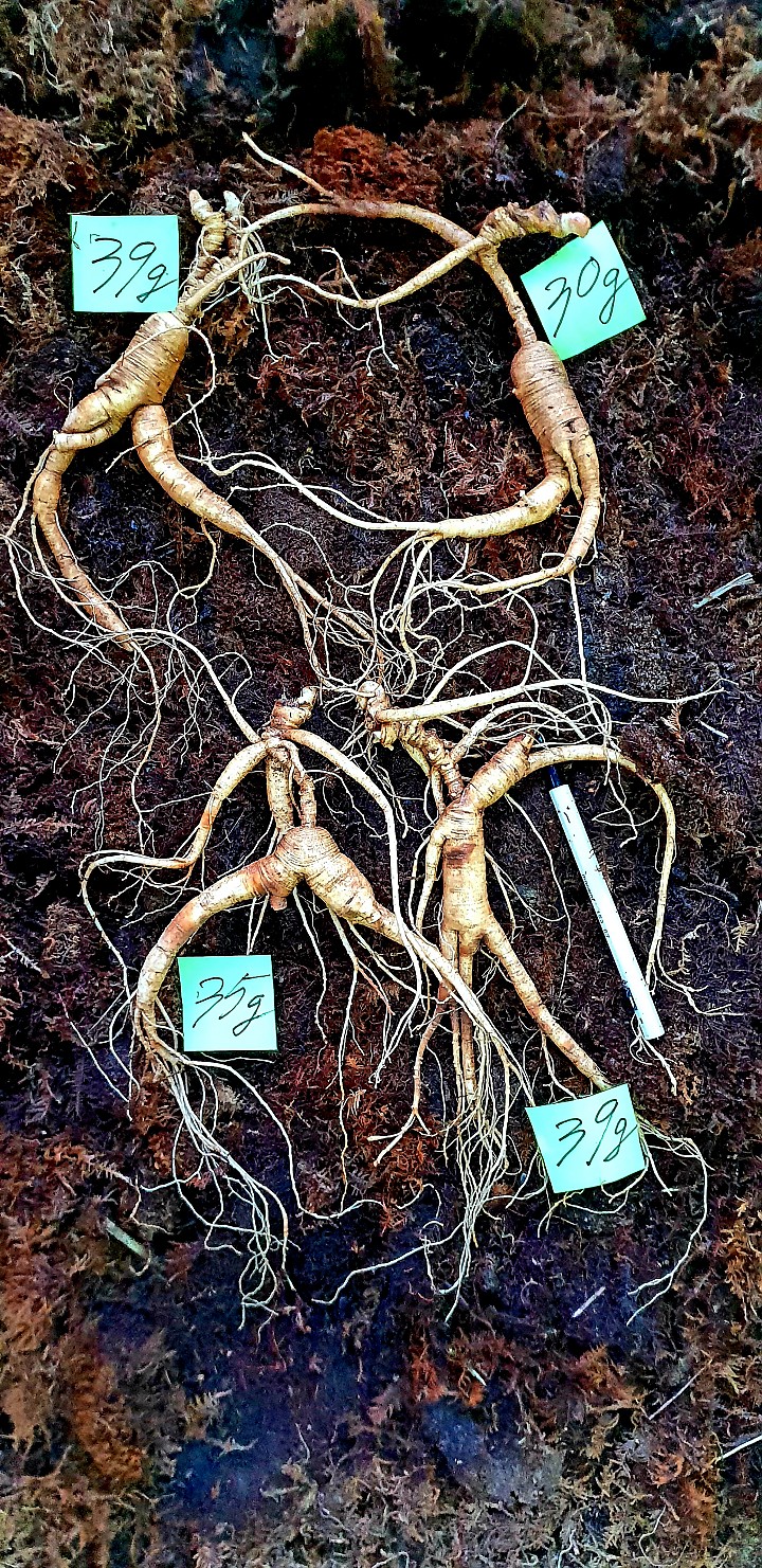 턱수가 발달되여 최상품으로 취급하는 13~15년근 양각연절삼이다
