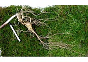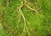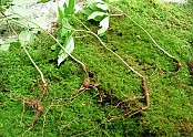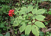 산삼의 최초의 싹(3행) 인위적 개갑과정을 거치지 않고 발아된 싹은 3엽으로 나오며 씨가 땅에 떨어져 자연발아까지는 약 3년정도 걸린다. 이때는 딸의 외피가 뿌리에 붙어있다. 인삼은 인위적 개갑을 통하여 그 이듬해에 싹을 틔운다.5행 (5엽) …(2018-05-08 18:21:48)