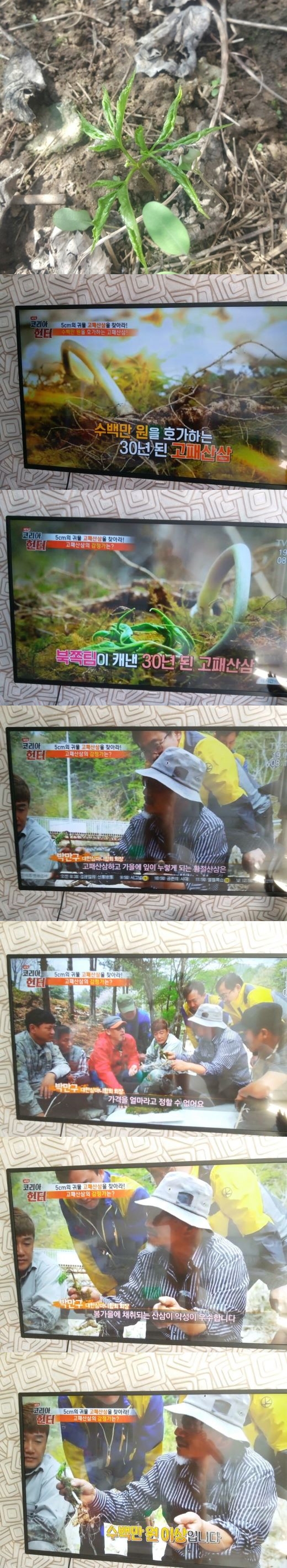 위사진은 2018년 5월 19일 아침 TV조선 코리아헌터 프로에서 방송한 < ...고패산삼을 잡아라 >몇개 장면입니다